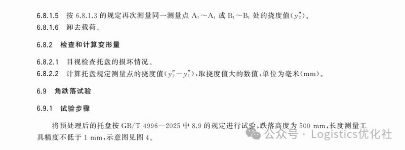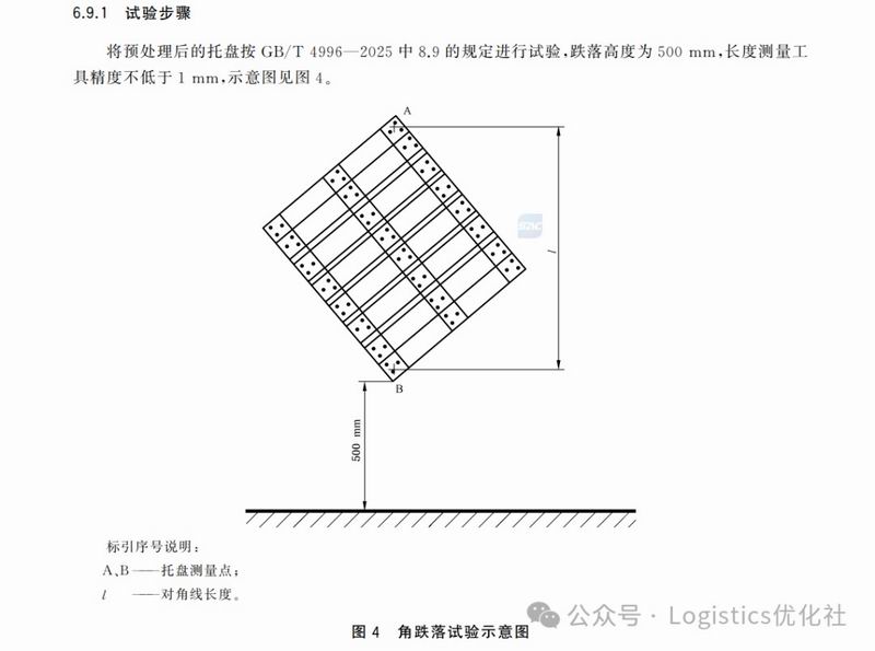 新增材料、尺寸及公差、防滑性能的專項(xiàng)試驗(yàn)方法,細(xì)化叉舉試驗(yàn)、堆碼試驗(yàn)的操作流程與示意圖,明確角跌落試驗(yàn)的測量工具精度要求,確保檢測數(shù)據(jù)準(zhǔn)確性。
